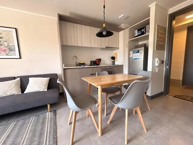 O apartamento 1H1B I Estadio Nacional Y Portal Nunoa Santiago oferece proximidade conveniente com atrações da cidade como o Centro Comercial Portal Ñuñoa, situado a 6 minutos de distância a pé. O apartamento dispõe de piscina privada, terraço e vista para o jardim.